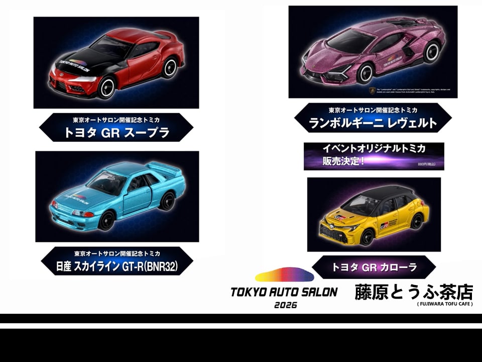 Tokyo Auto Salon 2026 is stacked. First the Tomica TAS exclusive GR Supra, Skyline R32 and a Lamborghini Revuelto. Also avail is the new GR Corolla including a Dream Tomica Initial D box set for the anime faithful at TAS. Which one are you aiming for?